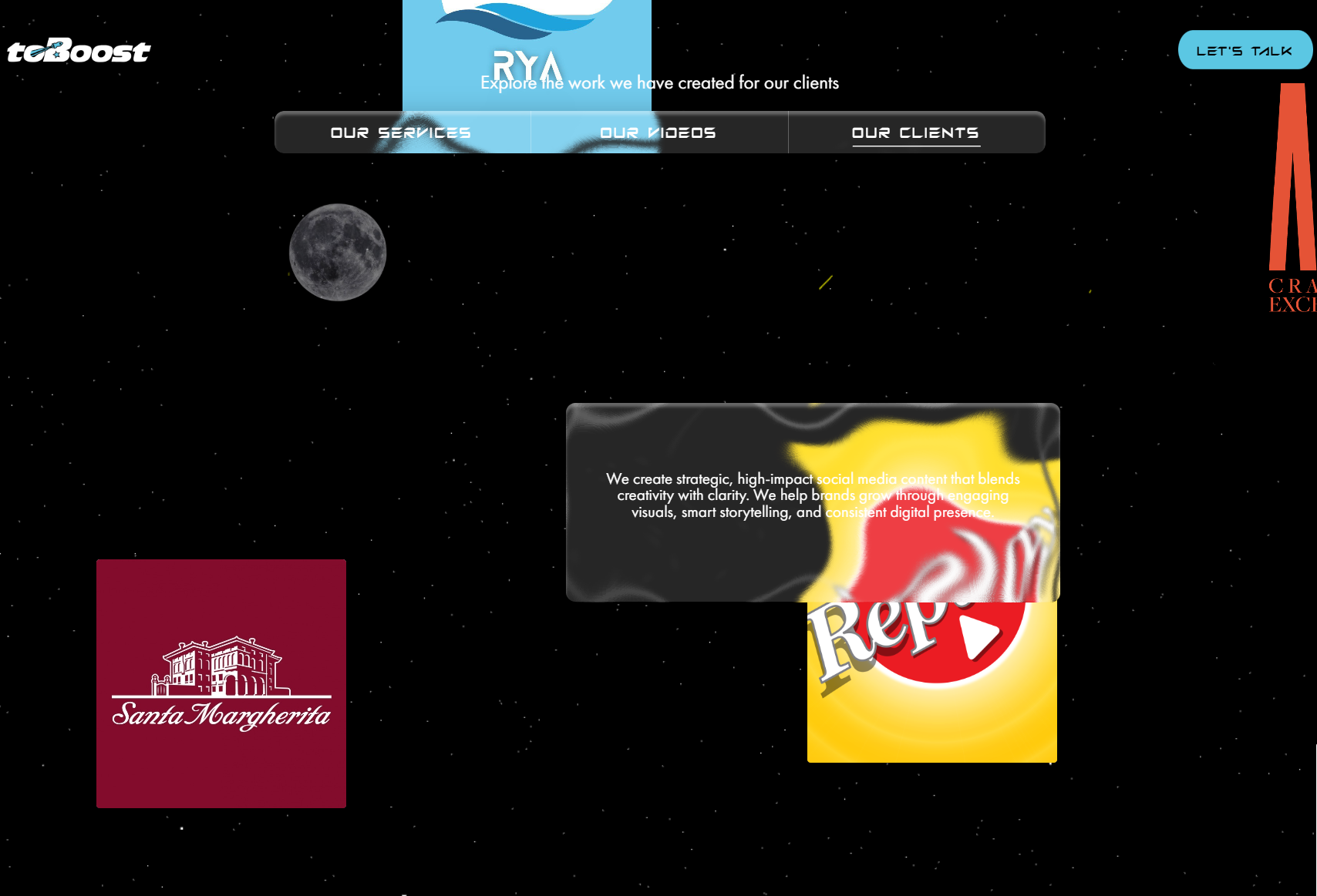 Special attention was given to creating a clean and modern interface that keeps the focus on the social content itself. The portfolio highlights reflect ToBoost’s creative style and help potential clients quickly understand the breadth and quality of social media work showcased on the platform.
